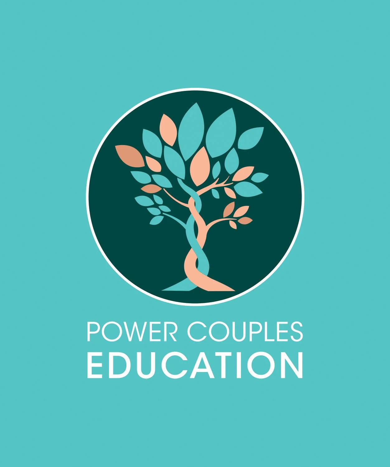 The Power Couples Education logo that was decided on was the interwoven tree, with two sides growing and weaving into one another, with leaves representing the personalities and habits of each partner impacting the other. The primary colors are gender neutral, while still offering contrast for a variety of uses.